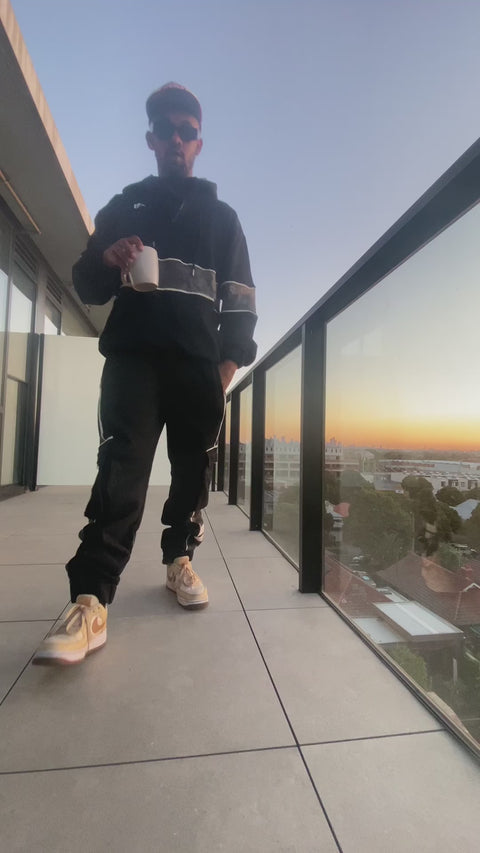 You’ll be on self imposed house arrest in these sweat pants. These sweatpants feature leg panels incorporating dark 'Beauty is Pain' art, framed with white reflective tape. With white reflective fabric crosses down one leg, you will stand out from the crowd.